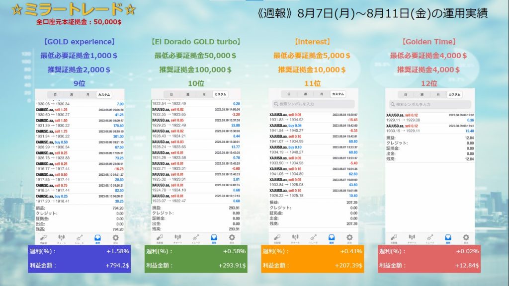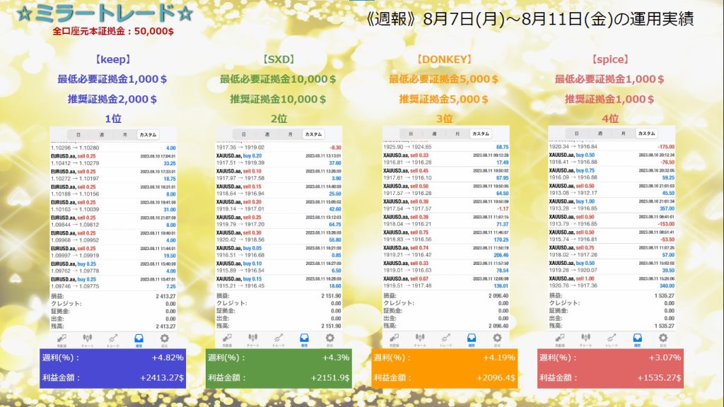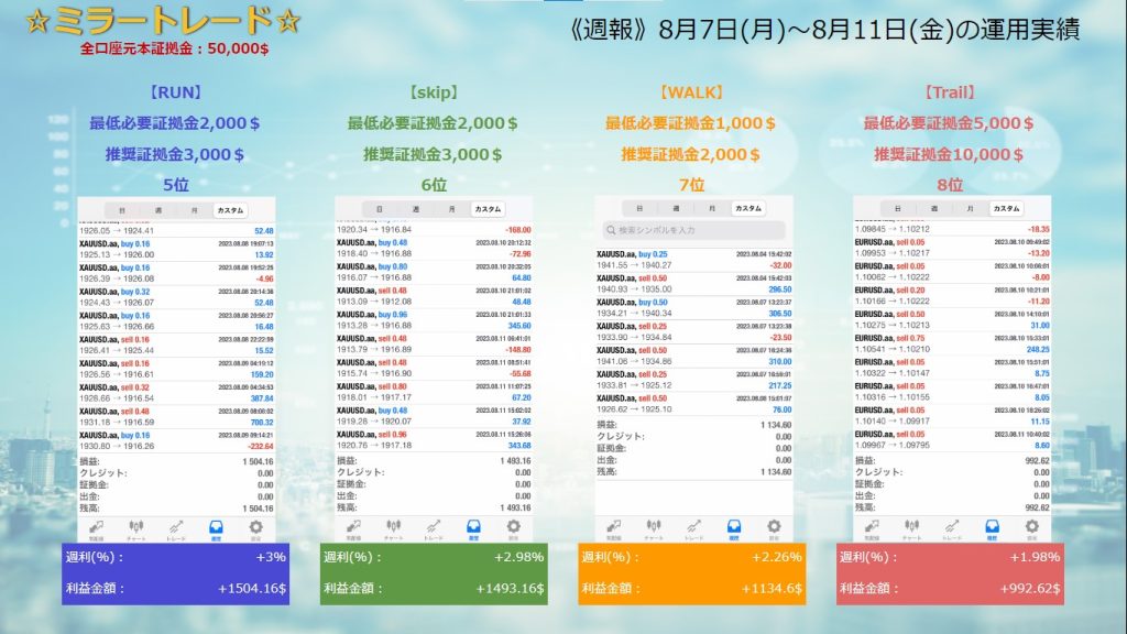 《ミラートレード》運用成績 8月7日(月)~8月11日(金)