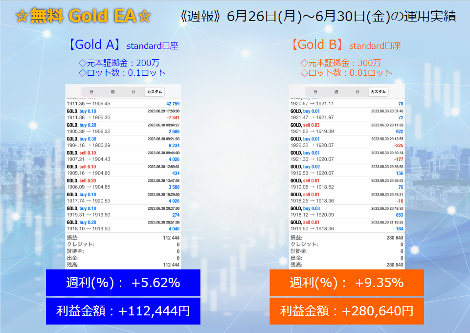 《無料EA》運用成績 6月26日(月)~6月30日(金)